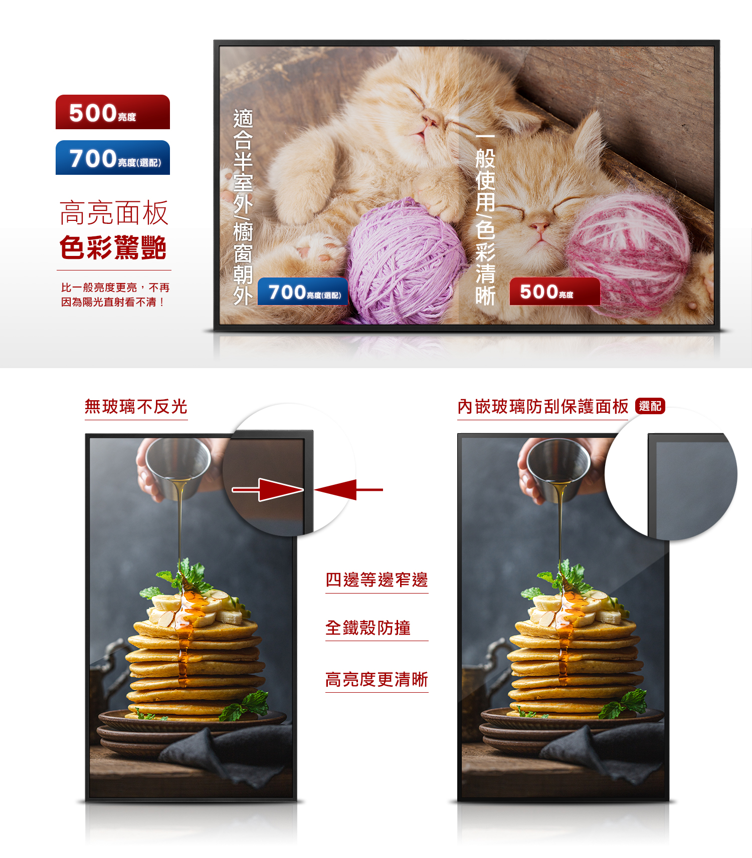500cd/㎡ (typical) 700cd/㎡ (選配) 1000cd/㎡ (選配) |